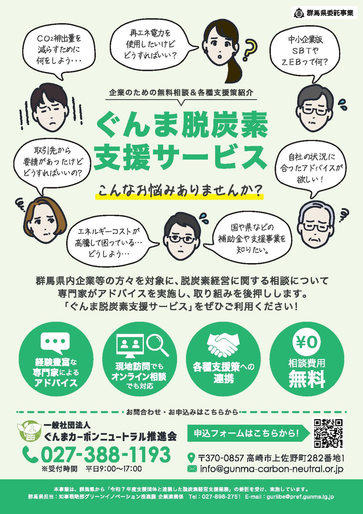 本事業は、群馬県から「令和7年度支援団体と連携した脱炭素経営支援業務」の委託を受け、実施しています。