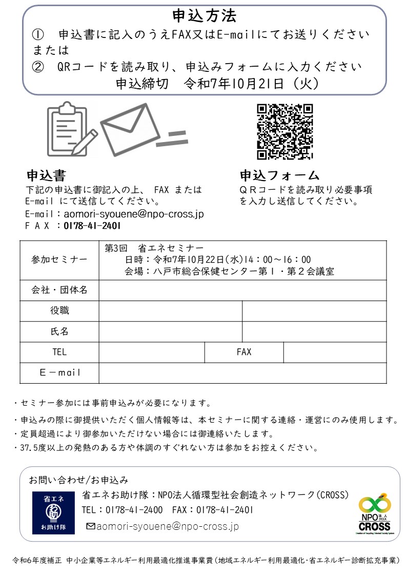 青森県においても夏の暑さ、局所的豪雨・大雪と気候変動の影響を受け、加えて、エネルギー価格の高騰は続き、光熱費の削減は大変難しい問題となっています。 今回のセミナーでは、コスト削減や脱炭素につながる省エネ機器への設備更新の際に活用できる補助金についてご説明し、設備更新の目安となる省エネ診断の詳細や省エネ診断を活用した事例などをご紹介いたします。