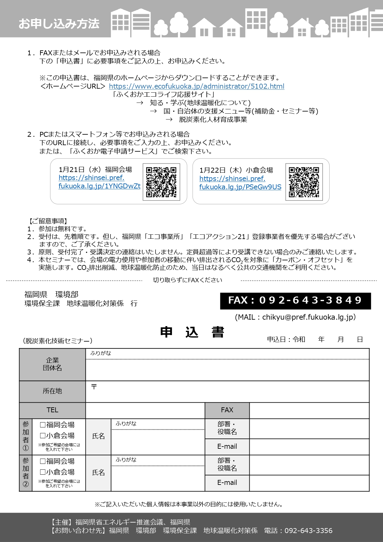 【福岡県主催】脱炭素化技術セミナーを開催します