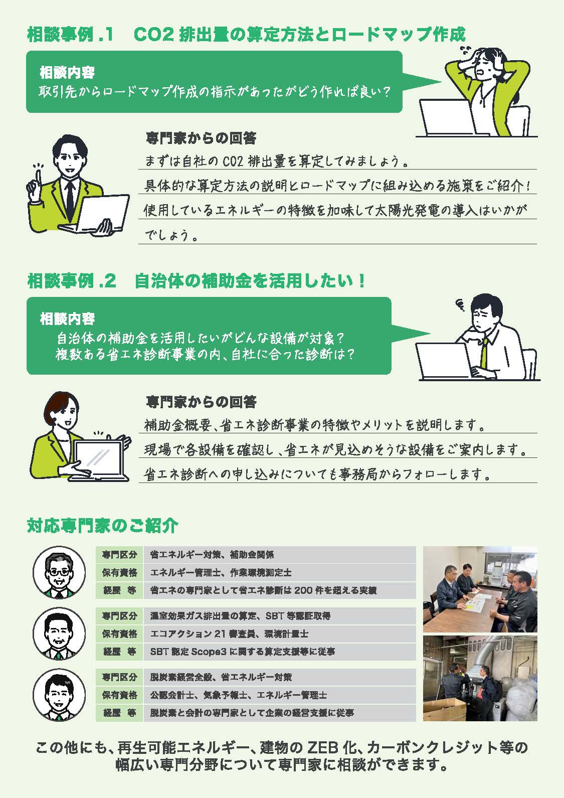 ・脱炭素経営、省エネ、再エネ、クレジット、SBTなど各分野の専門家が対応します!